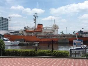やってきたのは名古屋港水族館。名古屋駅から地下鉄でスイスイ、駅から5分。便利な立地やね。水族館を目指して歩いていたら、ふ、船がある・・・!でかいの・・・!船があるの知らなかったけどもちろん行くに決まっております。なんと南極観測船「ふじ」だったのでした。