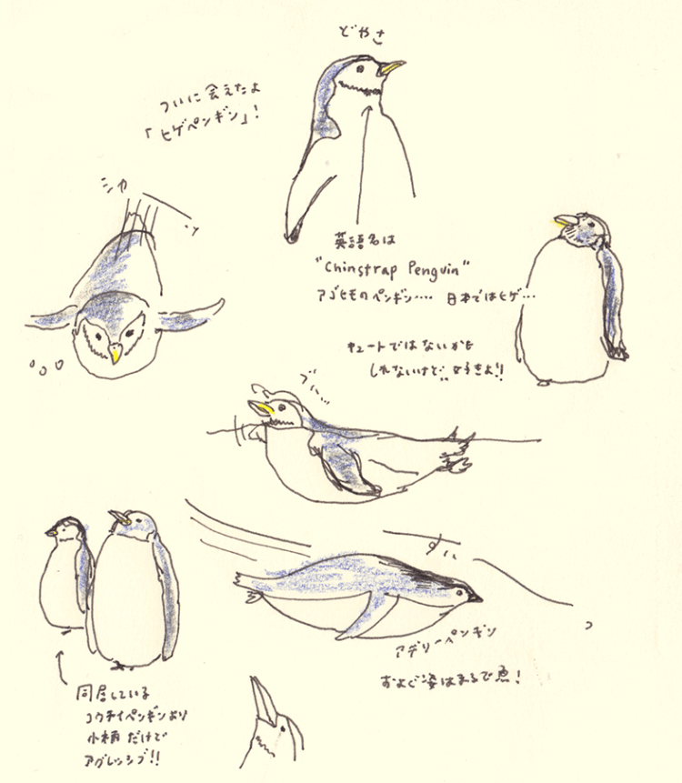 そしてようやくペンギンの水槽に到着。いたよヒゲペンギン!やったー!実は今四コマ漫画の連載をいただいている、「Journal for Mariners」という船乗りさん英字新聞のキャラクターは、このヒゲペンギンなのです。