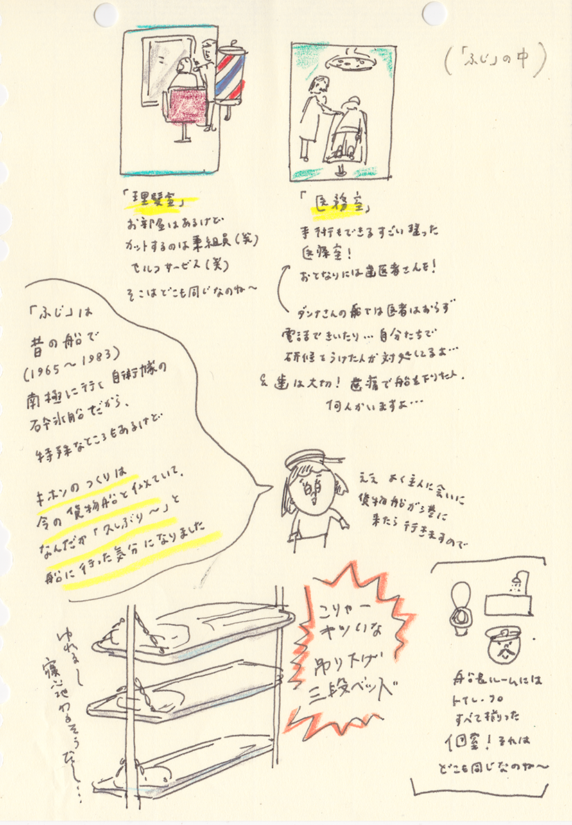 「ふじ」のオリジナルグッズがとても可愛かったので、思わずヨダレが出そうに。なんともかわいいハッピは「赤道祭」(無風の赤道地帯を無事通り抜けられるよう祈る)用らしいです。