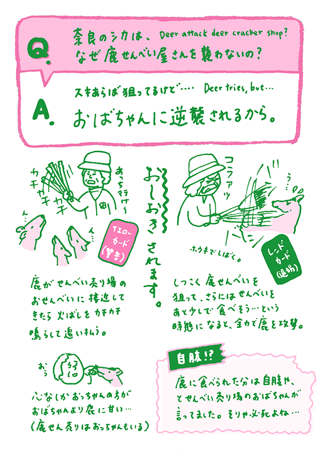 よく奈良公園で観光客の人がつぶやいている、鹿せんべい屋さんの謎にせまりました。あそこのオババたちは最強です。鹿とおばちゃんの仁義なき戦い。