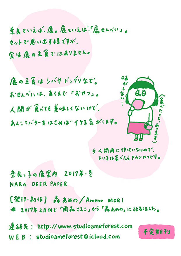 配布しているようでなかなか出していないフリーペーパー、「奈良っ子の鹿案内」。奈良県立図書館情報館、ことのまあかりさん等で置いていただいているのですが、少なめなのですぐになくなってしまいます・・・