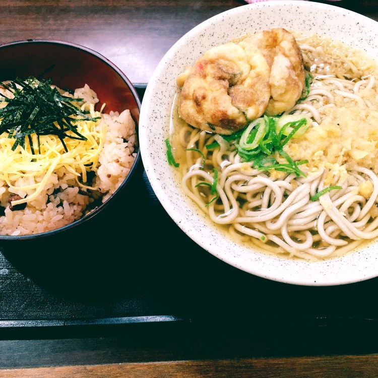 レディな私は完食ギリギリできず。蕎麦にご飯に明石焼のトリプル炭水化物が腹を攻める!