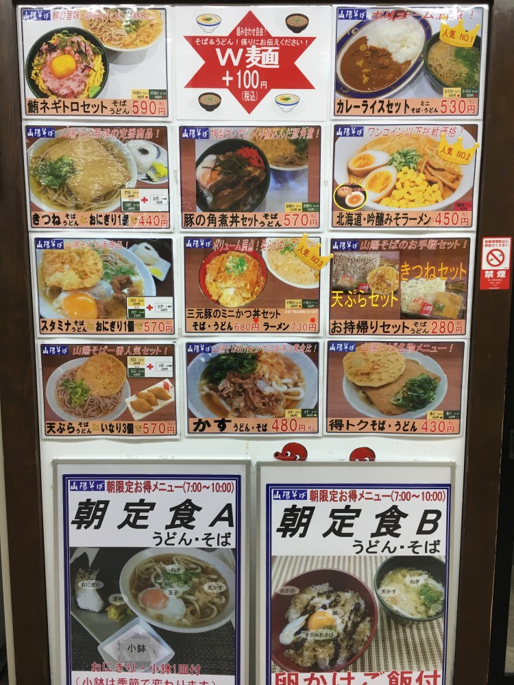 メニューの豊富さとこの明るさ!JRの麺家には見習っていただきたい。