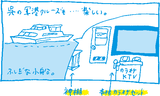 夕暮れ時は「夕呉クルーズ」なんてのも。なにかと「呉」にかける。