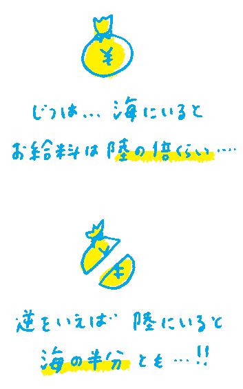 だけど残業代が出なくなるの(陸でも!)。みんな海で稼いだ頃がなつかしくな〜る〜