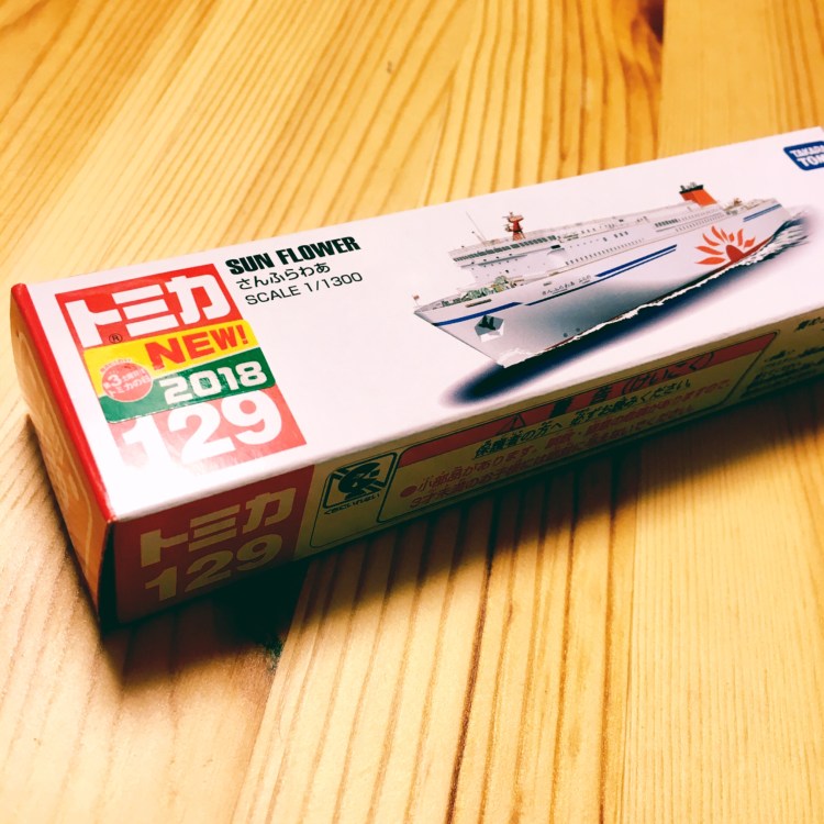 このトミカは北海道に行くやつの方。船に貼るシールに、「さんふらわあ ふらの」と「さんふらわあ さっぽろ」の2種類がついているので非常〜に迷うところです。