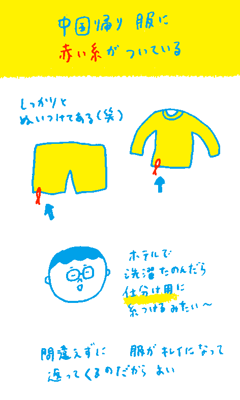 なのでパンツを一目みれば、この子は中国に行ってきたのね、とすぐわかるという。(糸切れよ、嫁…)