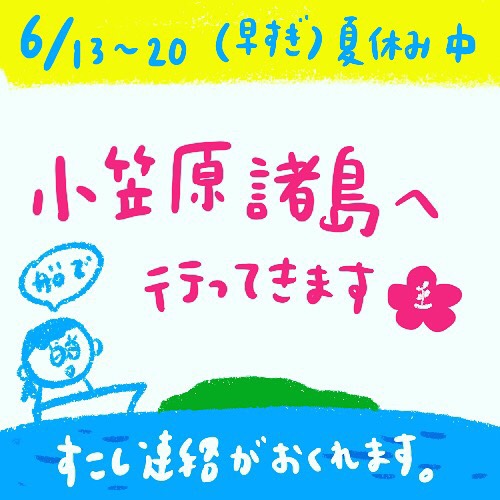 20日までお休み、小笠原諸島にいます。少し連絡が遅れるかもしれません。メールは見ます、返します。