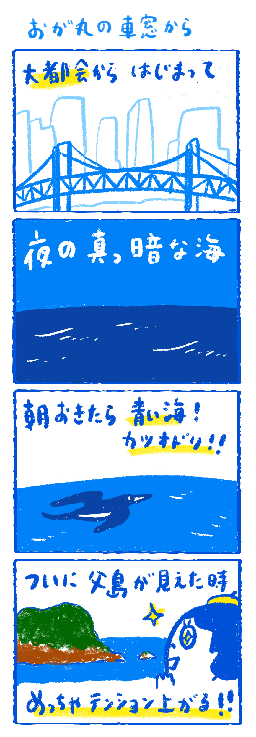 客船「おがさわら丸」のグッズデザインなどのご縁をいただいたので、念願でした。その旅の日記です。
