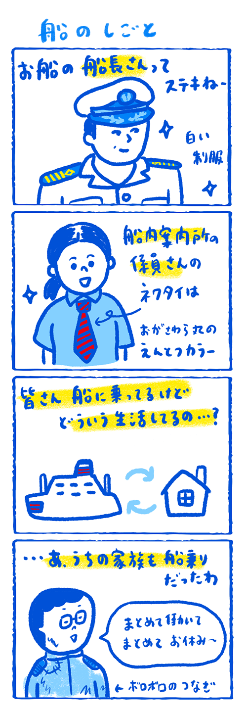 外国航路にいく夫は8ヶ月帰ってこないけど、国内航路ならもっと短いスパンで仕事してるはず〜
