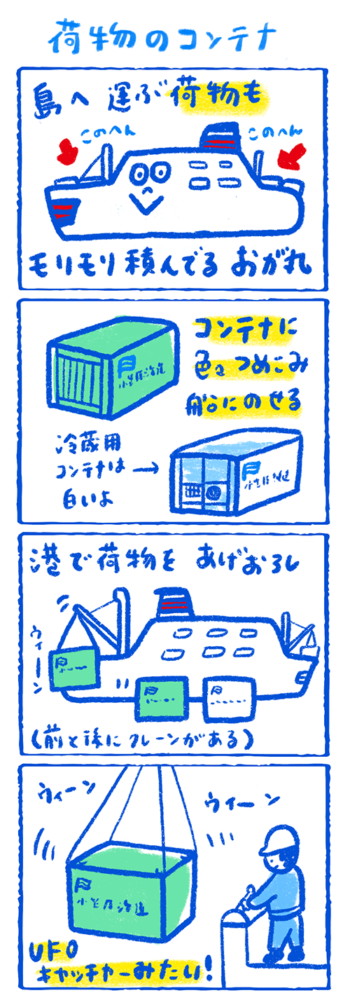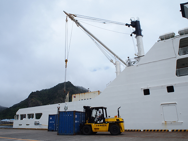 頼んだ品物はおがさわら丸ちゃんが運びます。(我が家は夫婦して船を「ちゃん」付けします。愛です)