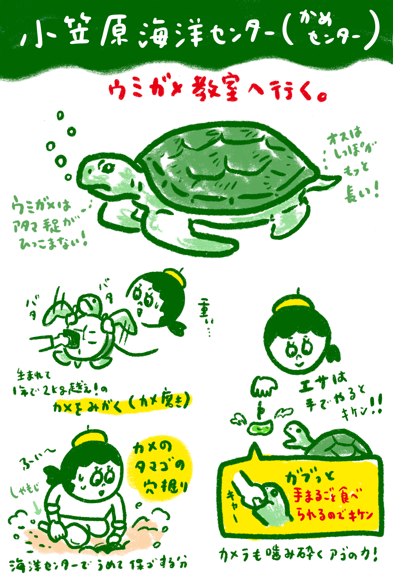 カメにさらに触れるべく、小笠原海洋センターという場所で、ウミガメ教室があったり、カメの水槽が見られるので、行ってきました。