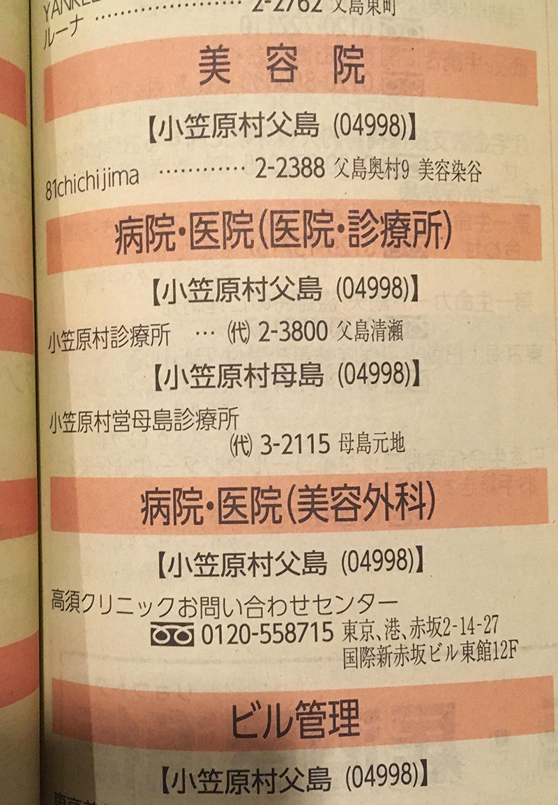 それから、衝撃だったタウンページ・小笠原バージョン。
