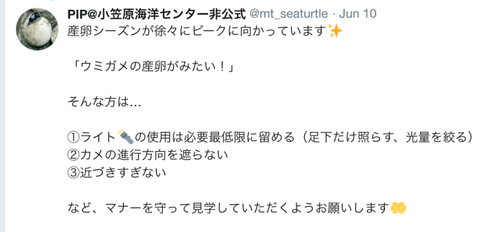 刺激を受けると海に戻って、卵を放流してしまう(=孵化しない)そうです。