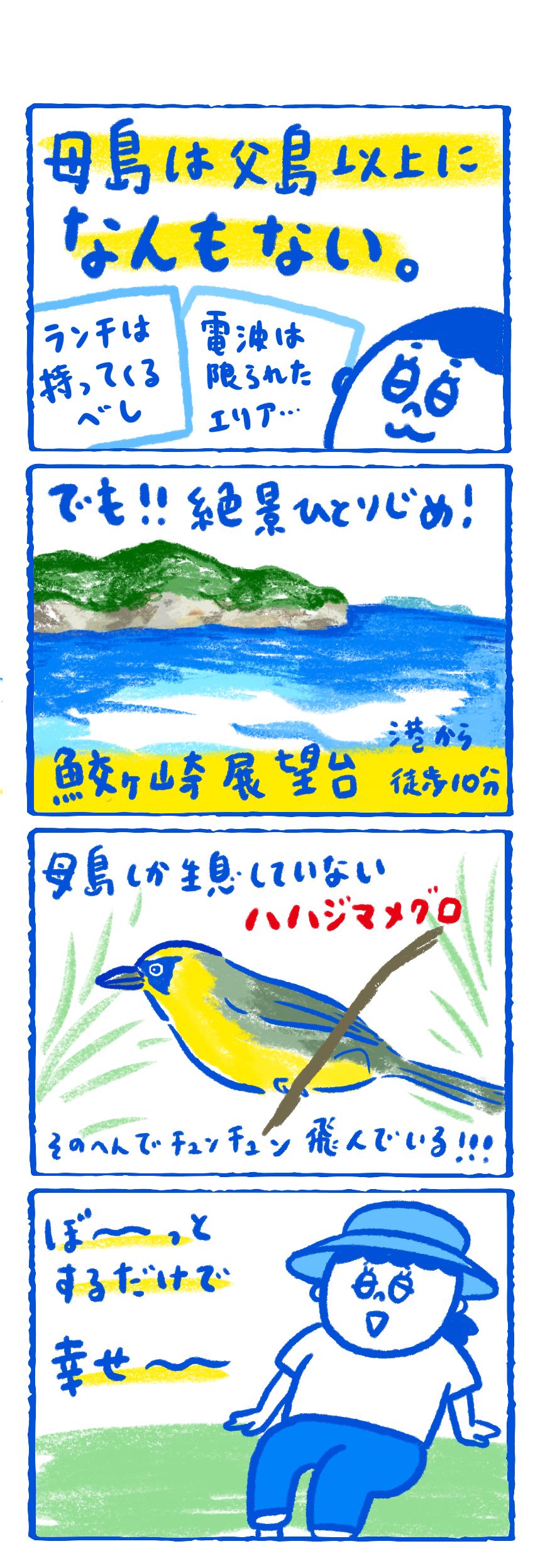 そうそう、父島も母島も、めっちゃ風が強いので、着るものに注意!
