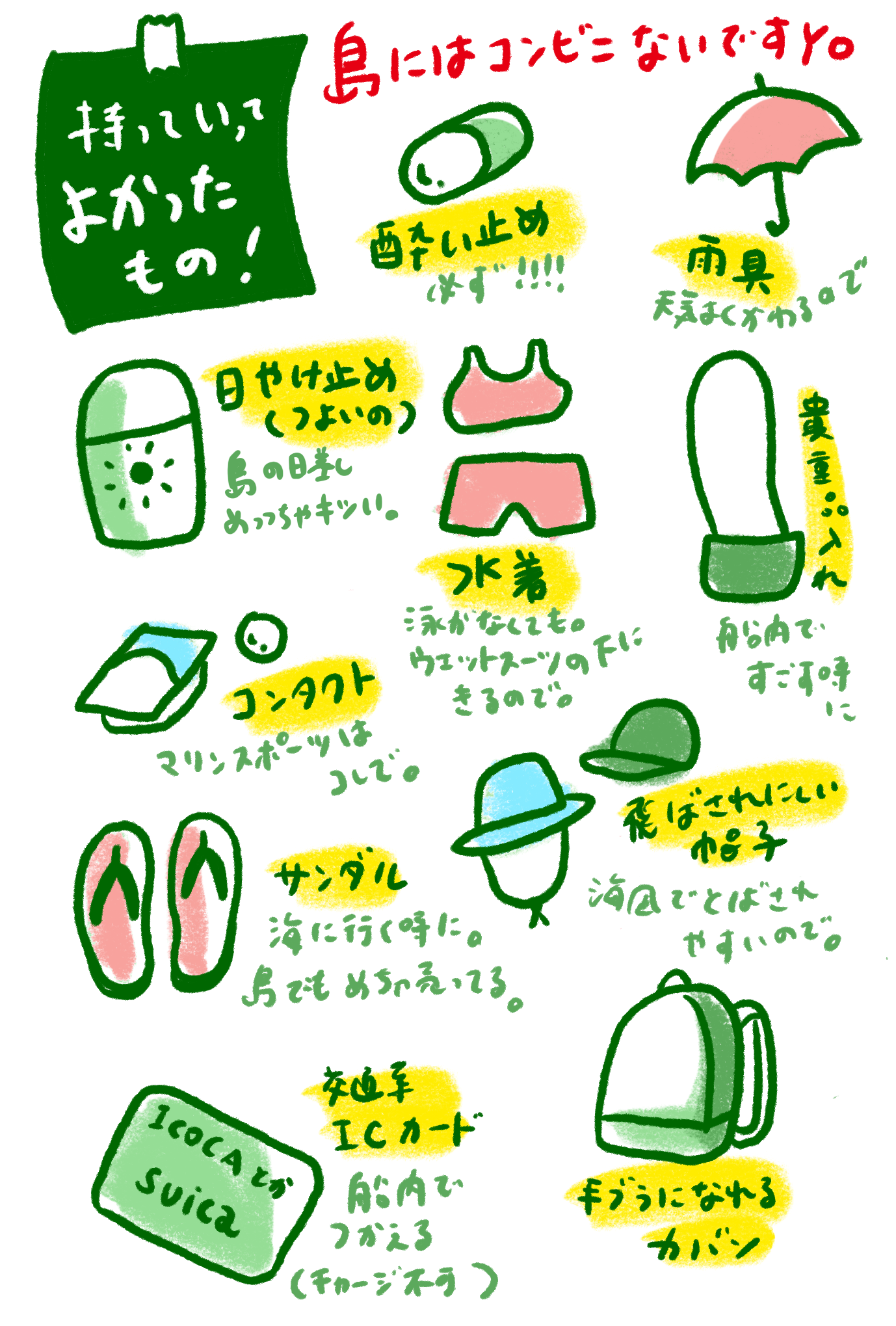 今後小笠原にいくぜ!という方に、そして自分の備忘録にも、島に持ってってよかった物リストを。