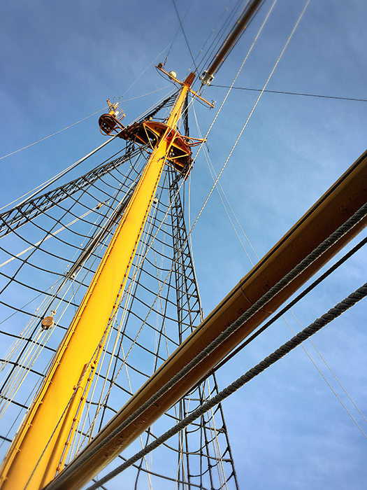 帆(マスト)を開くためにたくさんロープを使っています。