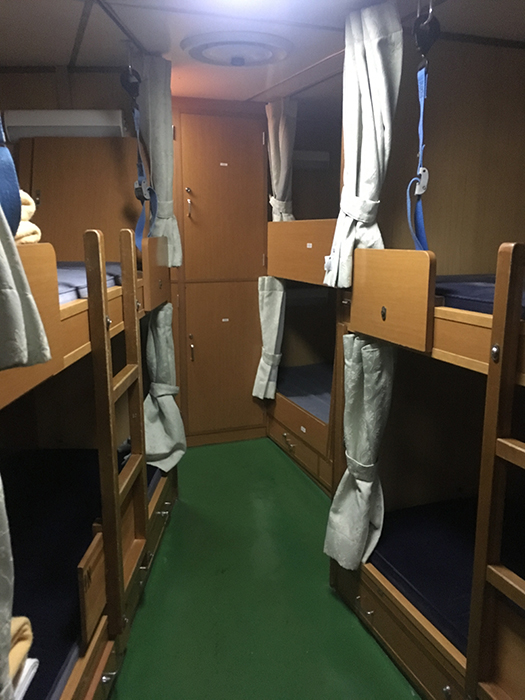 いつも寝つきが悪いのに、なぜか貨物船やフェリーの固いベッドと小さい枕では、めちゃくちゃ寝つきが良いのです。あのベッドほしい。