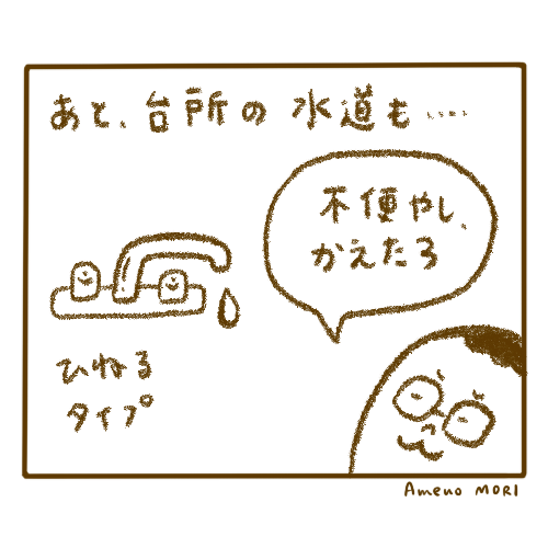 うちの水道、ひねるタイプでね~。肉や魚や粉で手がベタベタになる時に不便だったのよぉ。
