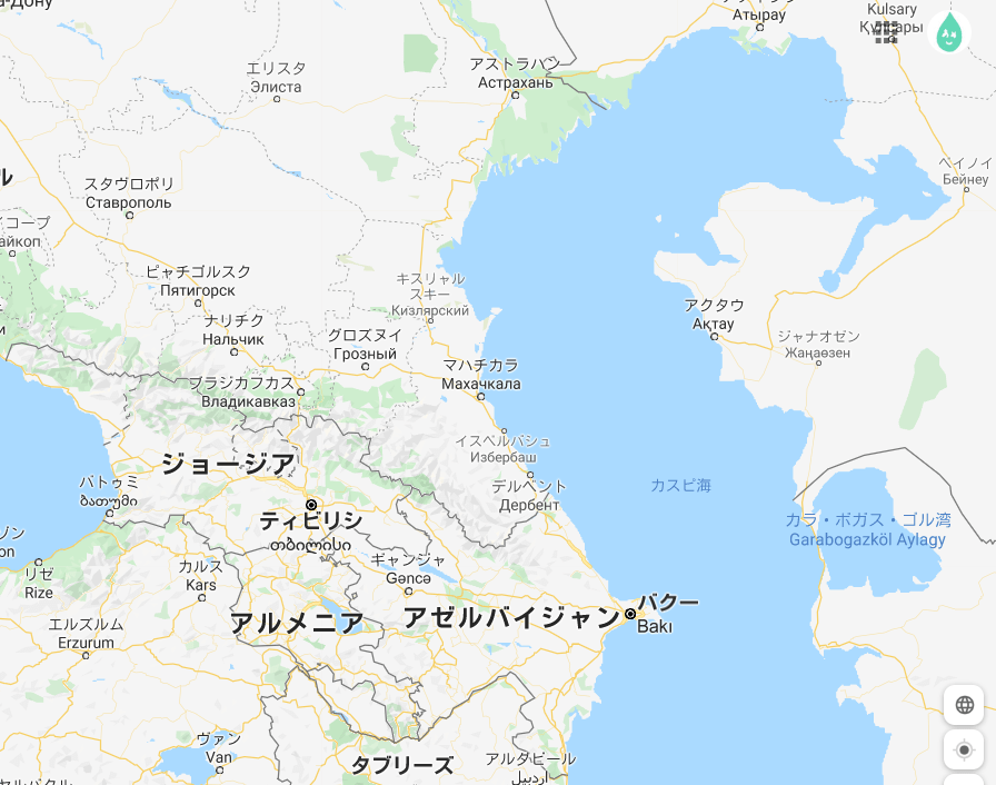 アルメニアとアゼルバイジャンが近いのは、わからんでもない。でもそのすぐ上がロシアとは(正しくはロシア連邦を構成する、北オセチア共和国)!ロシアの広さがよくわかる一例。