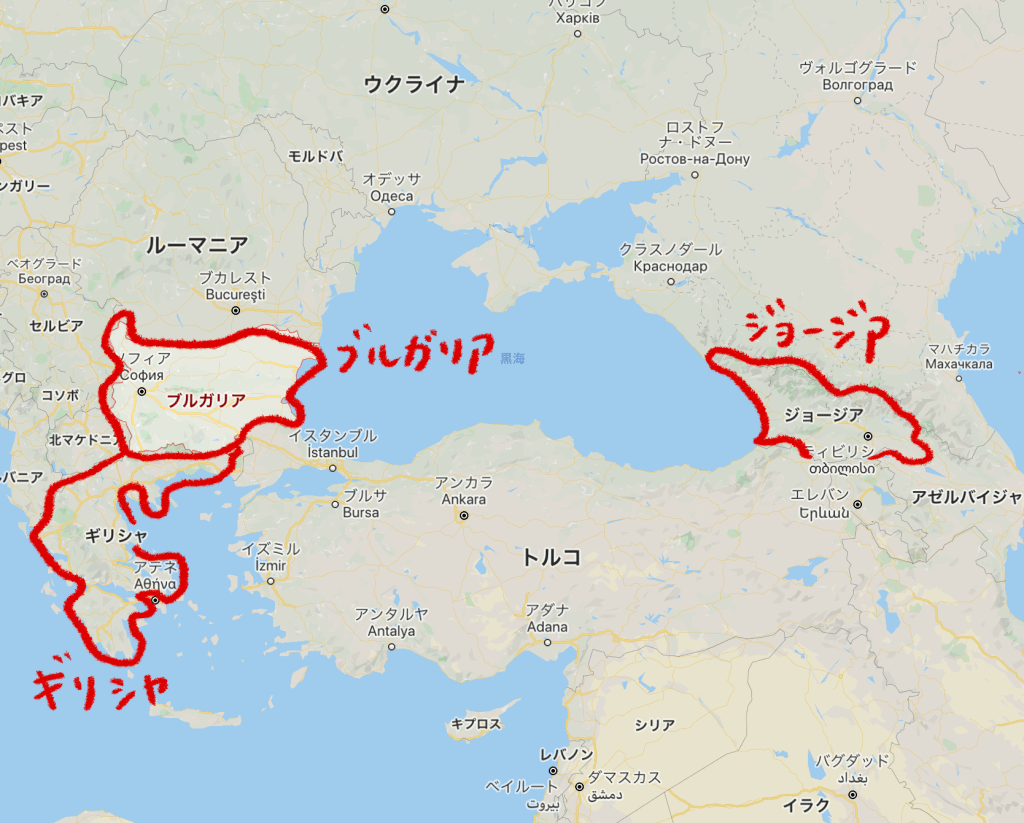 さて、このヨーグルト三国をGoogle Mapで探してみました(私は地図が大好物です)。 ギリシャはいいとして、ほか二国、どこやねん状態。