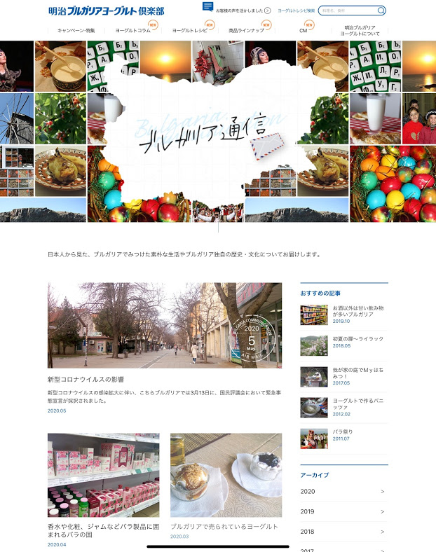 ブルガリア共和国のことがよく知れます。ヨーグルトコラム、「ヨーグルトでめぐる世界の食卓」など、家にいながら世界グルメ旅行気分。これはいい。 (同様の記事がパルテノHPにもあるが、なんというか、ヲタク度が違う)