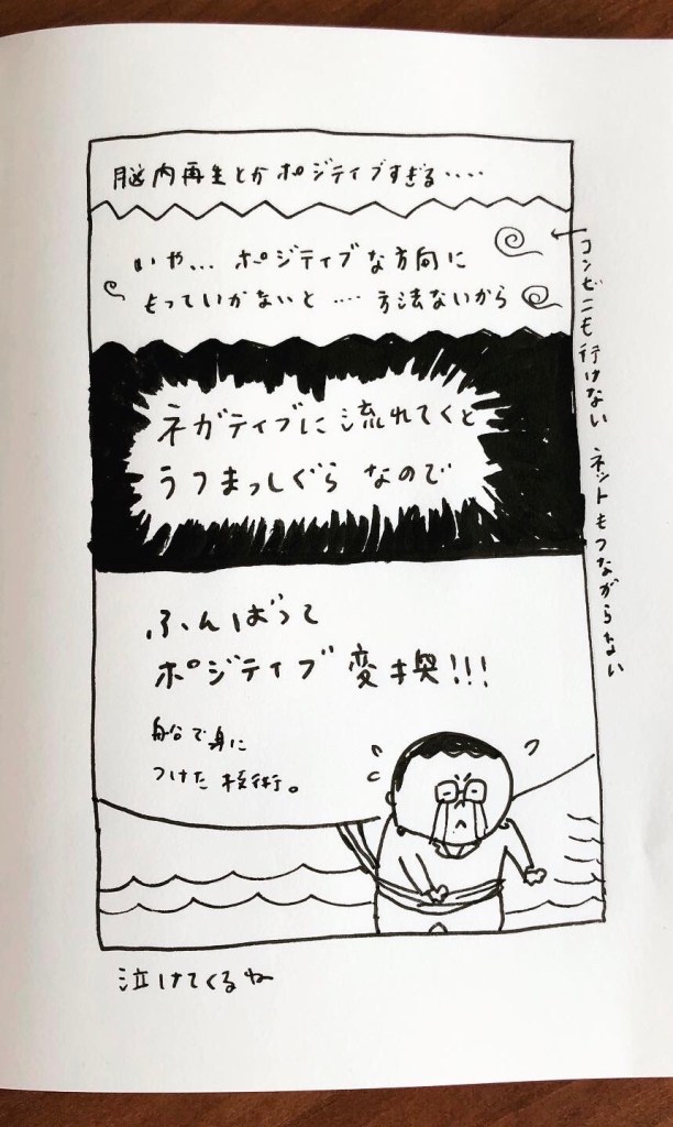 閉鎖空間で働きながら「会えなくて悲しい」という方向に流れると、ネガティブのどん底まっしぐら、鬱になりかねない、と。(また泣ける)