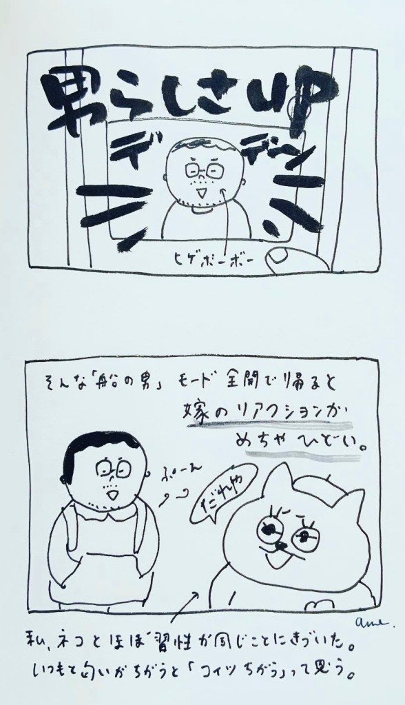 船から戻ると船の匂いがする(機械油かな)。私は猫とかなり習性が似ていて、家族がいつもと違う匂いだと「こいつ違う」とセンサーが光ります。