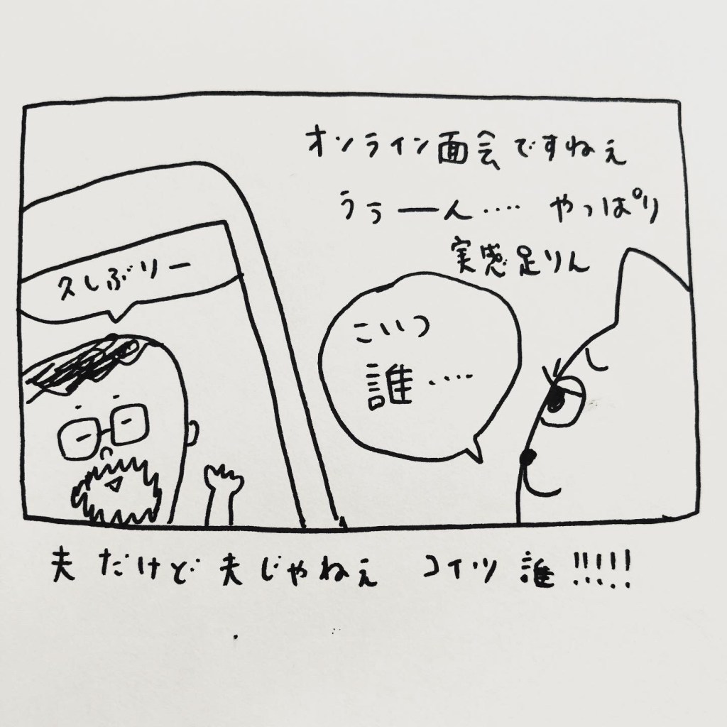 で、画面越しに見る夫らしき人…アンタ誰?