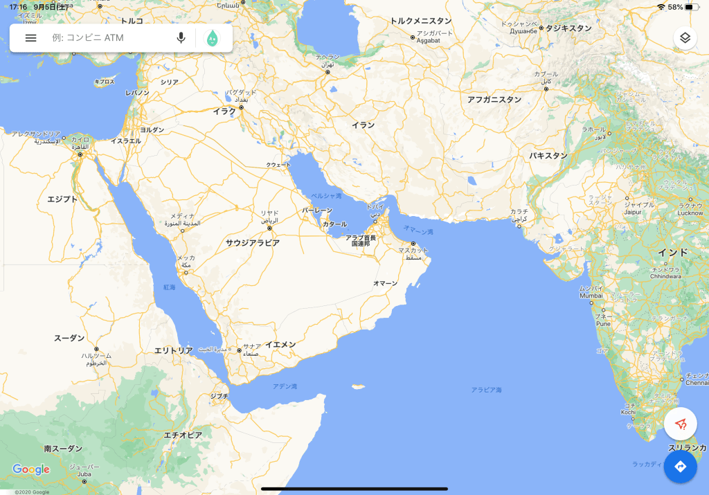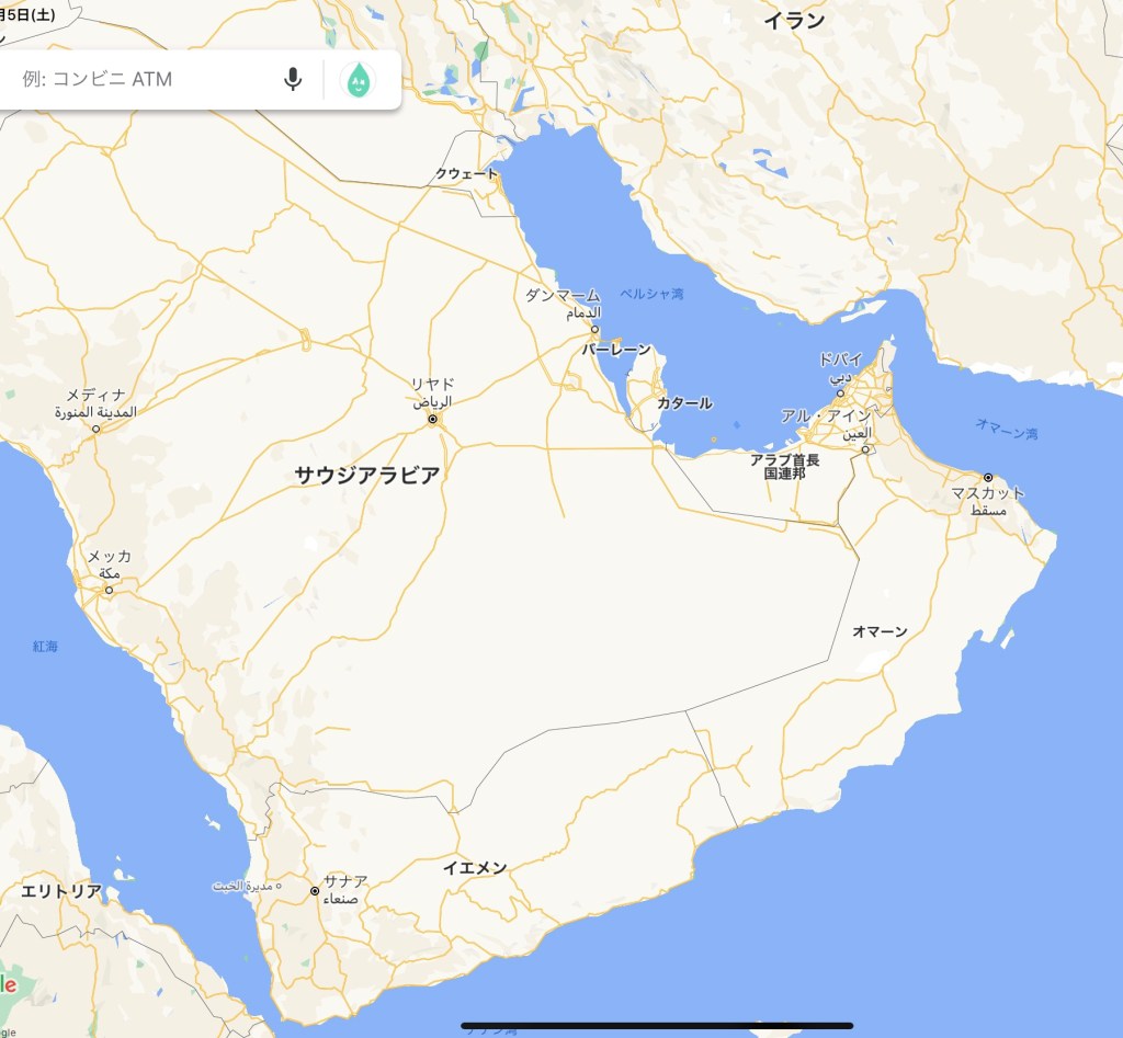 Google Mapでこうやって見ると、アラビア半島ってインドとアフリカの中間くらいなのね。いや若干アフリカ寄りか。