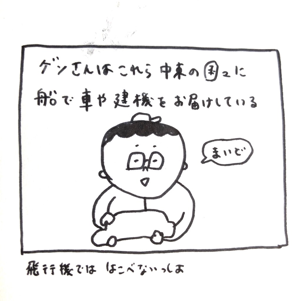 ゲンさんは名古屋で積んだトヨタの車やらなんやら、中東にお届けにあがりました。砂漠の民のランドクルーザーは船が運んでるよ!