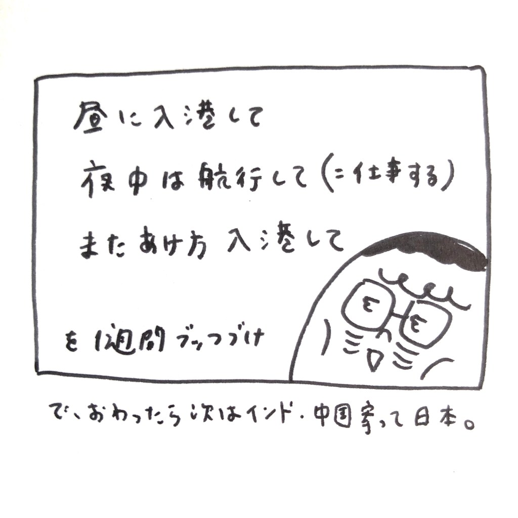 船乗りさん、睡魔と暑さと体力の限界と闘っております…停泊長くなるとン100万円飛ぶから大変とは伺っておりますが…