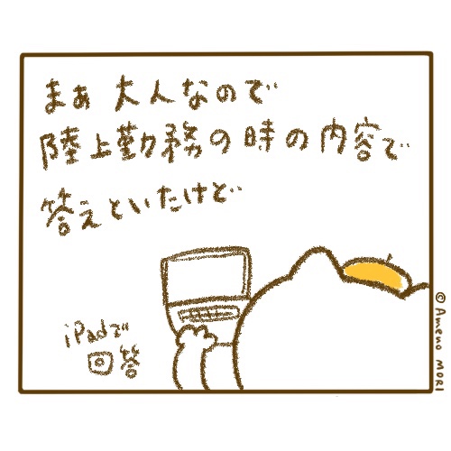 とりあえず解答欄に当てはまるものがなさすぎて、答えられない…ので、陸上で事務所勤務してた時のことを書くしかない。とりあえず。