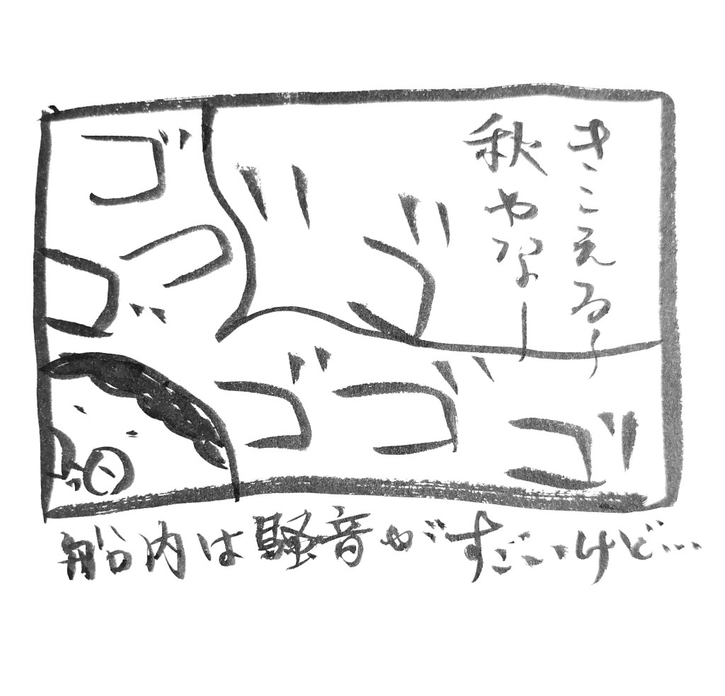 船はエンジンやら空調でうるさいから聞こえるかな…と心配したけど、聞こえた模様。秋の音色をお裾分け〜
