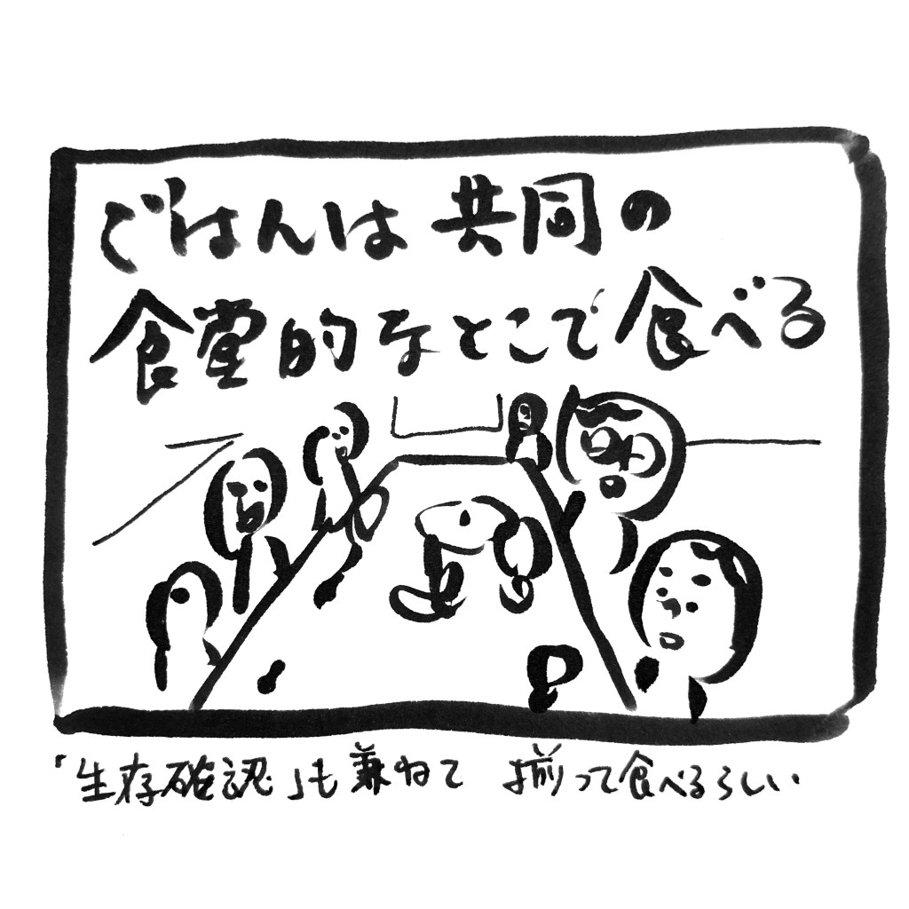 船内は結構広いのです。そこで「誰も海に飛び込んでないよね…?怪我してないよね…?」という確認も兼ねて、食事は一緒に食べるそう。