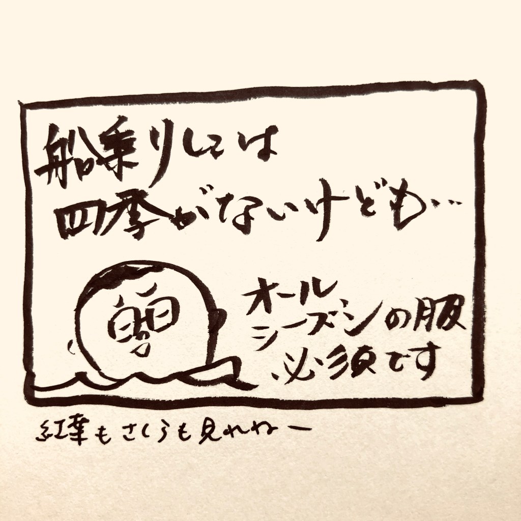 うっかり船乗り、蒸し暑い6月から乗船したので、船を降りる頃には寒いというのを忘れて(そりゃそうだ)、私物の厚手ジャンパーはお留守番していました。