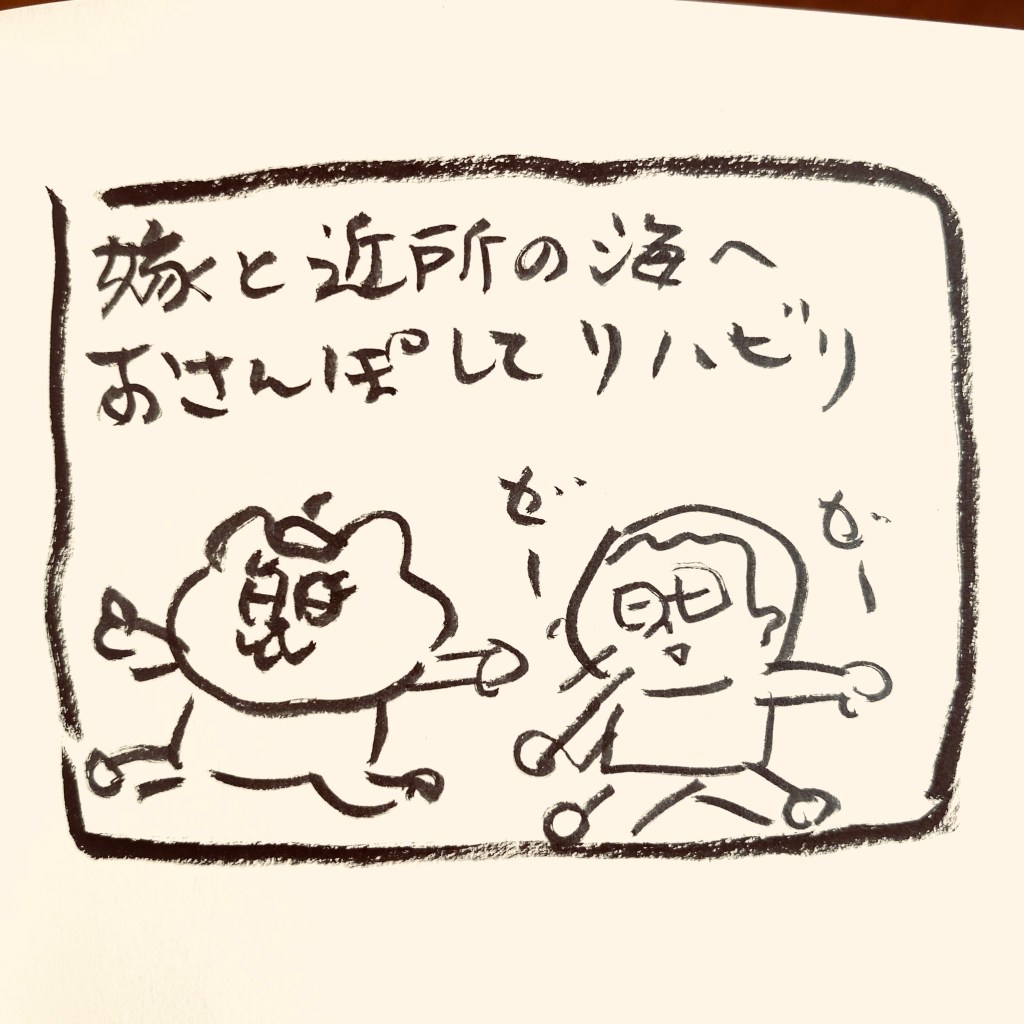 近所のだだっ広い海岸まで散歩してリハビリ中です。