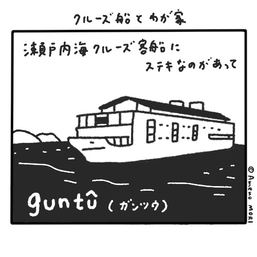 瀬戸内海を走る、「guntu(ガンツウ)」という素敵な船があって憧れです。しかしクルーズ船って高級なやつは値段がすんごいでございますね(驚いて庶民なコメントしか出ない)