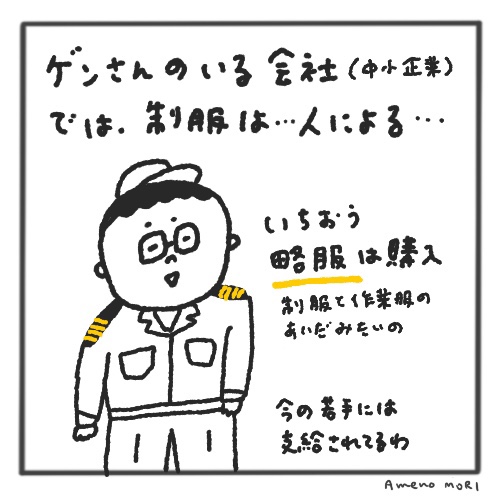 制服を着てビシッとしたい人は着てる。特に規定はないようです。中小企業は大手ほど規定がありません。割とゆるいです。