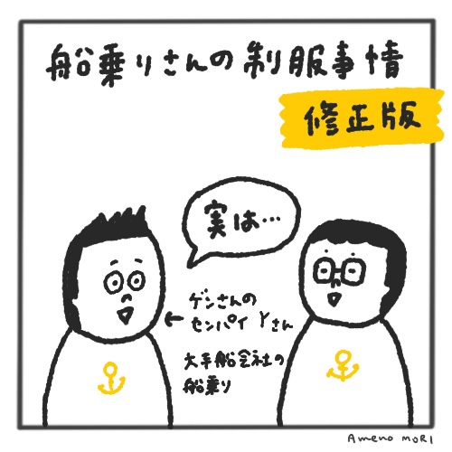 船長になってもこういう格好なのは割と珍しいそうで(ゲンさん現場が好きすぎる)、あちこちで爆笑されているゲンさんです。