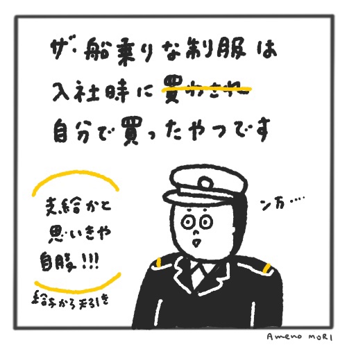よくドキュメンタリーで密着されてる貨物船の船乗りは、こういう大手船会社の船乗りさん達でございます。なので制服着ています。パリッとしてる。