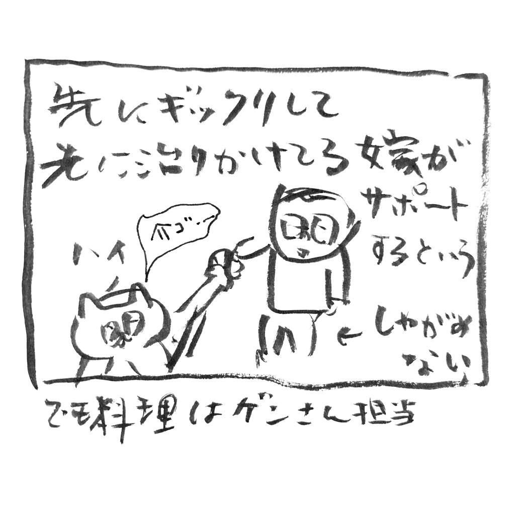 いつも姿勢がまっすぐで、動きも割と穏やかなゲンさん、実は去年もギックリ腰になっていた!!!!(ごめんあんまり変わらなくて気づかなかった!!!)