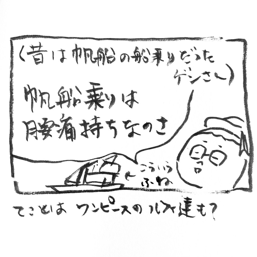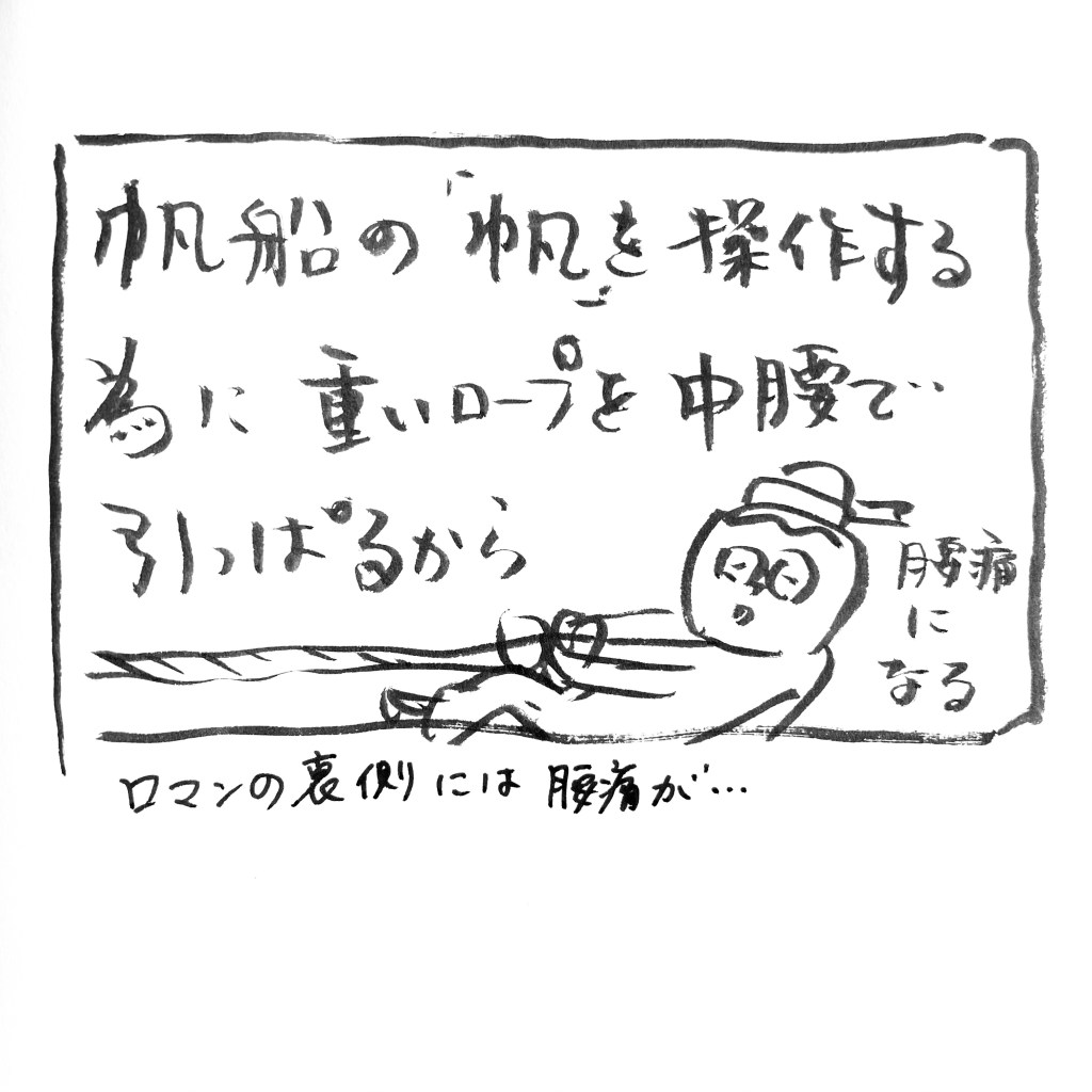 元々帆船乗りだったゲンさん。「帆船乗りは腰痛持ち」だって?