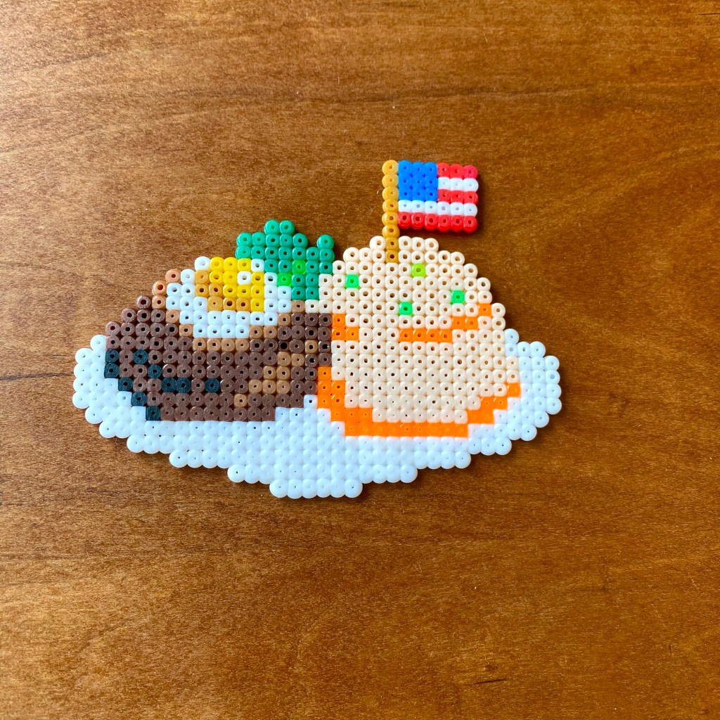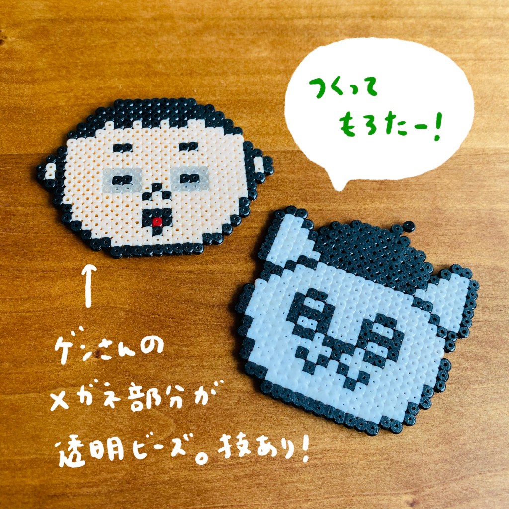 で、奥様にアイロンビーズで我らを作ってもらいました。かわいい!