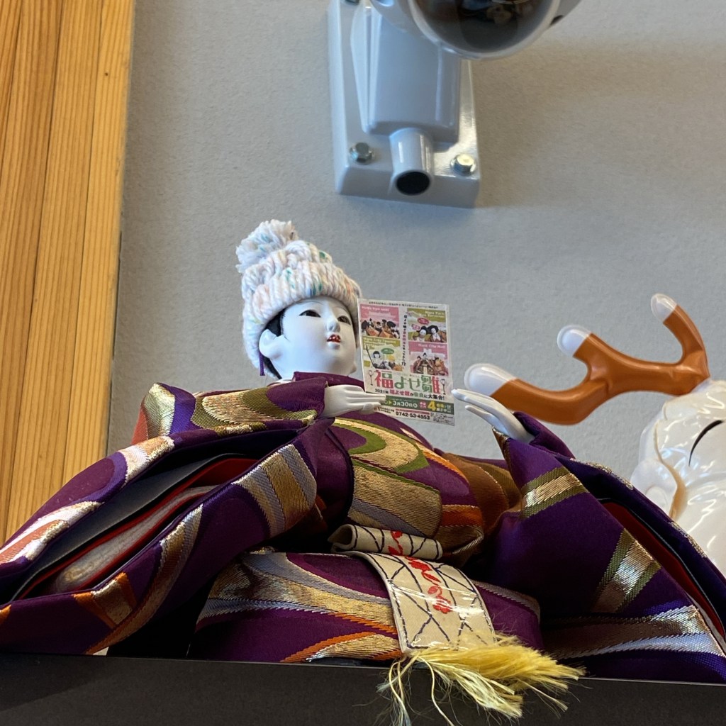 と、奈良の平城宮跡にあるカフェ的なところ・・・のレジ横に謎のバイトリーダー・・・。じわじわくる。雛人形さまですよね?