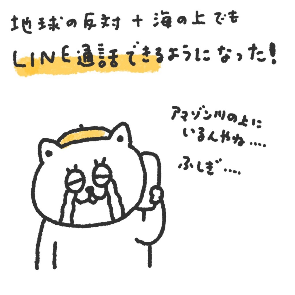 しかしですね、そんな遠いところ(地球の反対側)の海の上、いや、川の上とでもLINEで通話ができる時代が来た。最高!!!