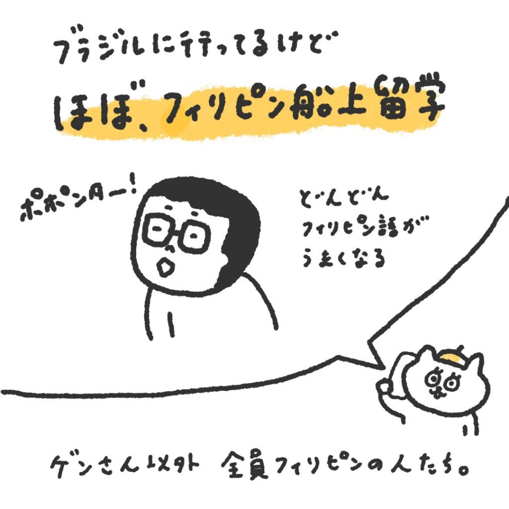 自分以外はフィリピン人、という船上留学をしているような感じ。おかげでまたフィリピン語が上達しているゲンさん(通話してたら聞こえるゲンさんのフィリピン語)。