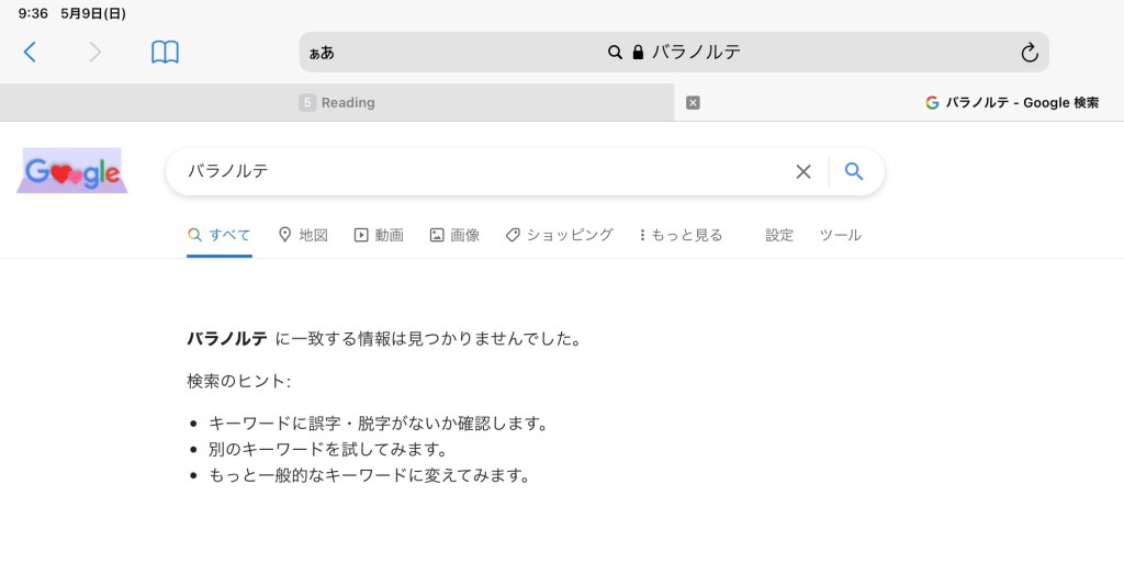 Googleで「バラノルテ」と入れて検索しても出てなかった事に驚き!!