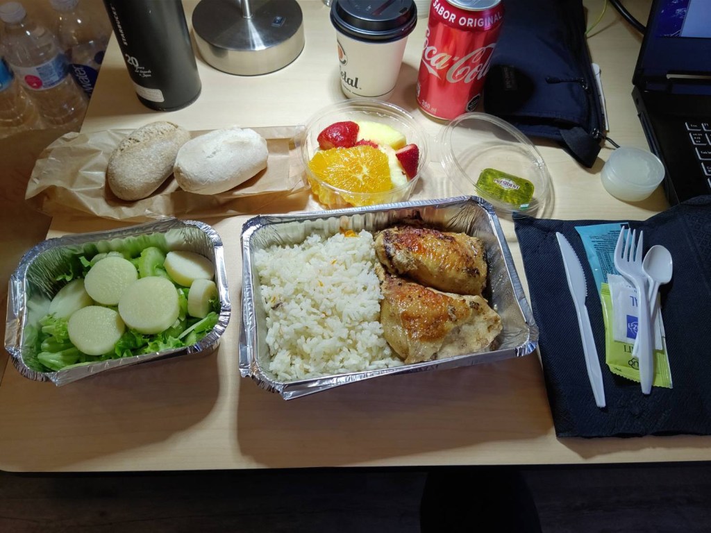 ホテルのお弁当はこんなのだそう。ご飯とパンとおいものトリプル炭水化物!!