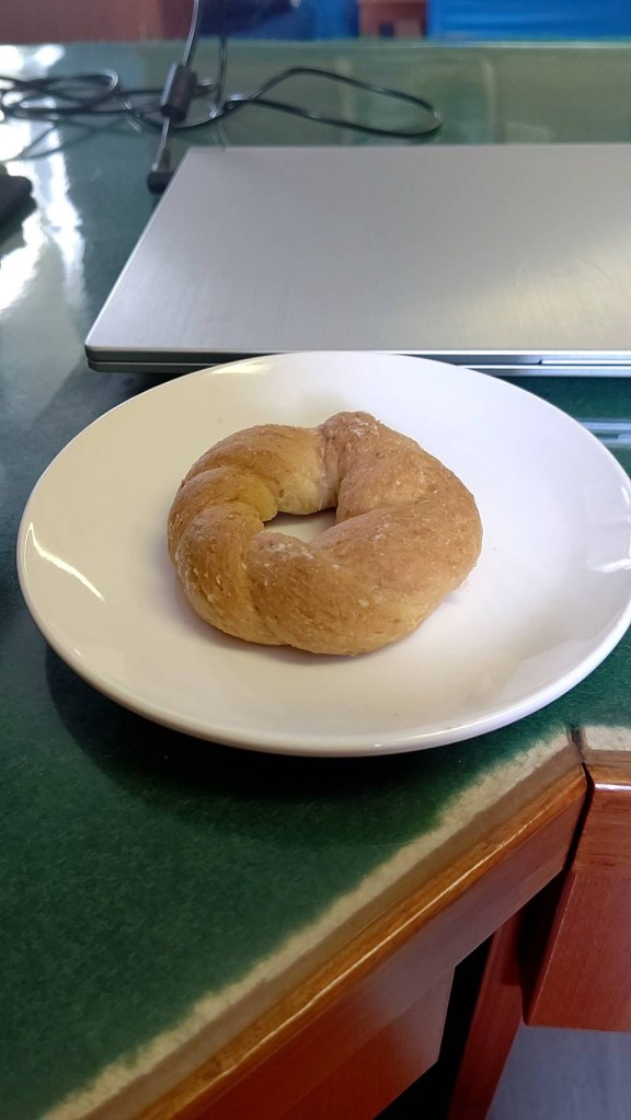 自販機はないけど、おやつの時間に手作りパンが出てきてニッコニコの船長。今日はこんなやつと報告が。